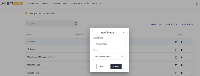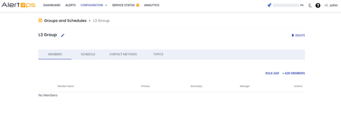 - On the Groups & Schedules Management page, you may add Members, Schedules, Contact Methods, and Topics to the group.