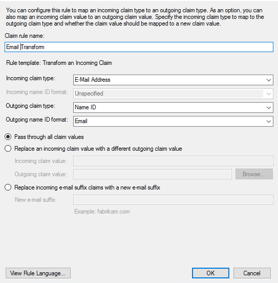 - Choose Pass through all claim values.
