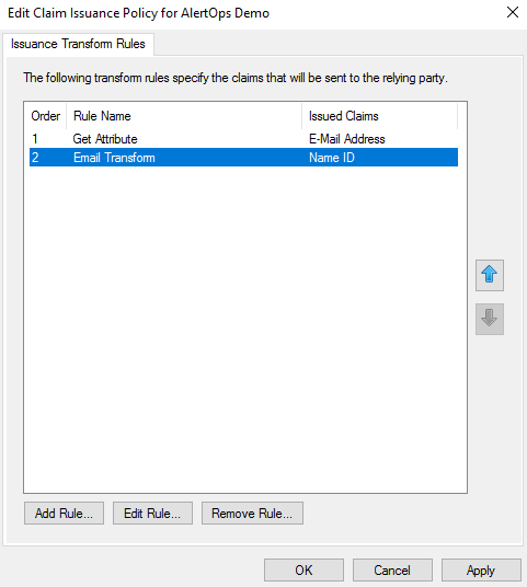 - In the Issuance Transform Rules dialog, click Add Rule.