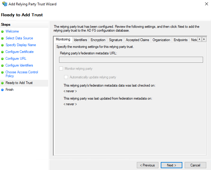 Configure Relying Party Trust.