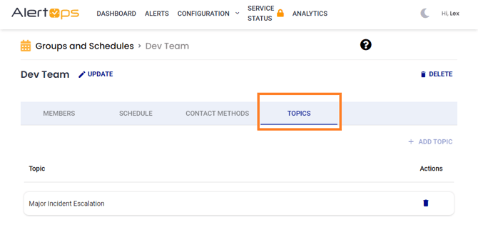 - Navigate to Groups and Schedules and expand the Topics tab.