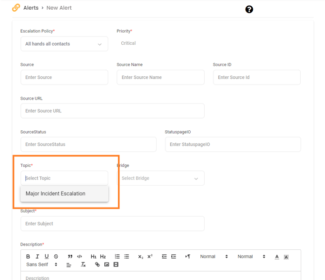 - Select Priority using the dropdown menu. Use different Topics for each Priority/SLA.