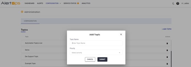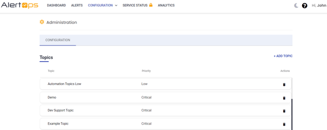 - Navigate to Configuration and select Administration and scroll down to Topics.