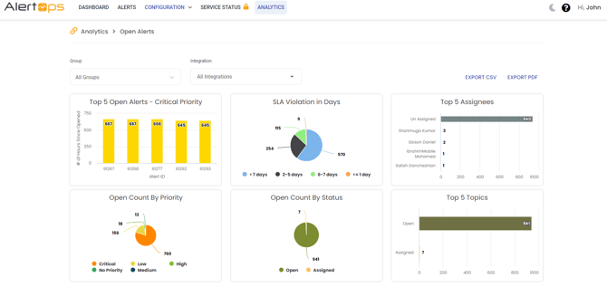 - Click Export PDF, the Open alerts report is downloaded as a .pdf file.