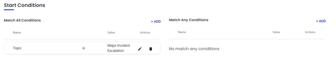 - Choose Topic for the start condition name and select the topic you want associated as the value.