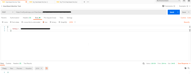 Using a tool such as Postman, send a JSON string to your Heartbeat Integration.