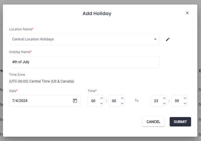 - Holiday Name: Provide a name for the holiday.
