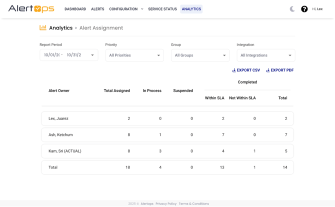 All reports in AlertOps allow for export in CSV or PDF formats for further analysis. The ability to filter by different criteria ensures that teams can focus on the most relevant data for their operational needs. By leveraging these reports, organizations can enhance response times, improve SLA adherence, and optimize their on-call and resolution workflows.
