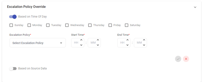 For example, you can apply a different escalation policy during normal business hours and a separate escalation policy for nights or weekends. With time-of-day escalation policy override, these changes between policies will happen automatically and seamlessly.