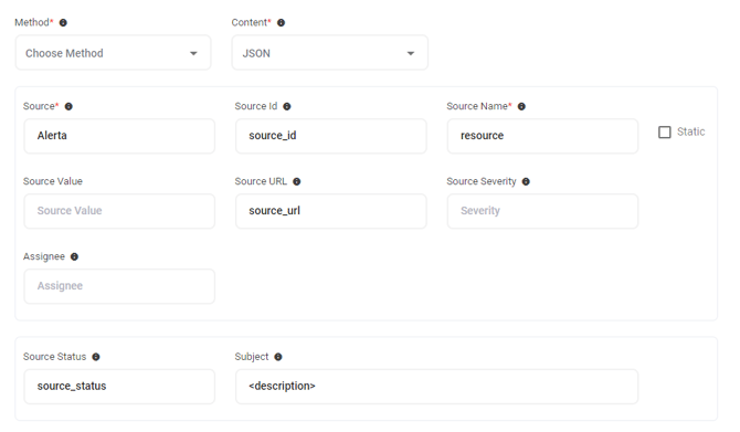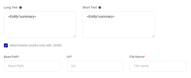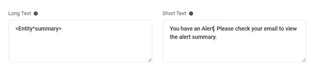 The Short Text and Long Text fields are not required, but it is recommended that you configure each of these.If there is no Long or Short Text field configured, AlertOps will use the entire JSON body as the Message text. You can customize the text fields using a combination of static and dynamic text.