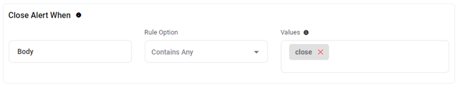 This setting is where you can configure the source and value that AlertOps will parse from incoming data to trigger an alert. In the example above, you can see that a new alert will be triggered when the body of an incoming integration email contains a value of 'open'.