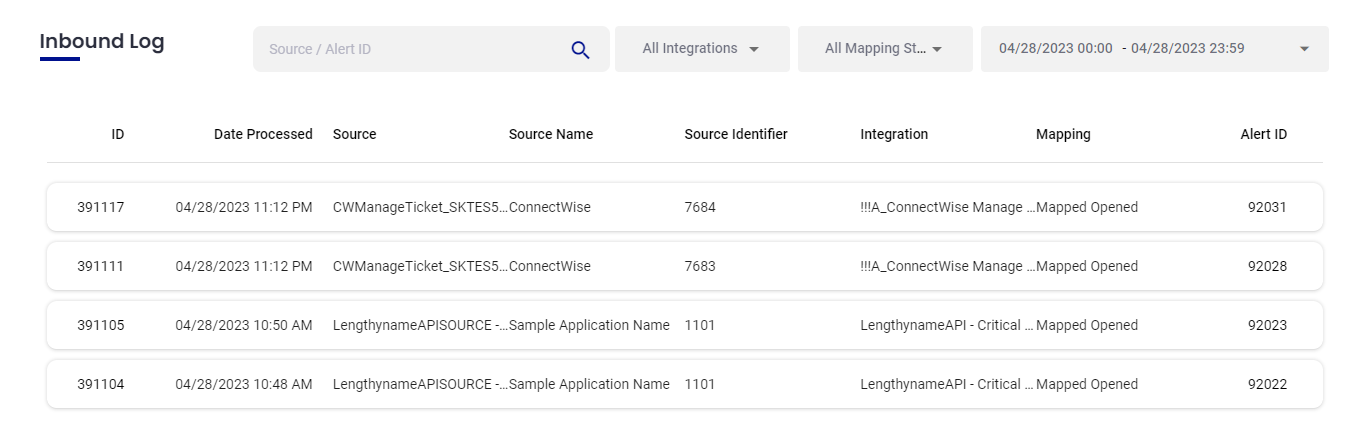 Use the Inbound Log to view incoming alerts.
