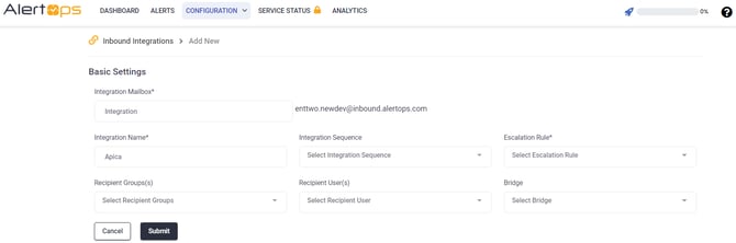 - Navigate to Configuration -> Integrations -> Add Email Integration, the Email Integration Detail page opens