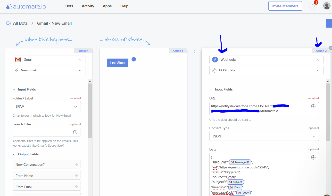 - In Automate.io you can create automation for a lot of scenarios. Based on what trigger you set for your automation, you will have to setup a webhook action to execute and POST information that is necessary to AlertOps. The trigger can be anything, and you will have to change the JSON Payload accordingly.