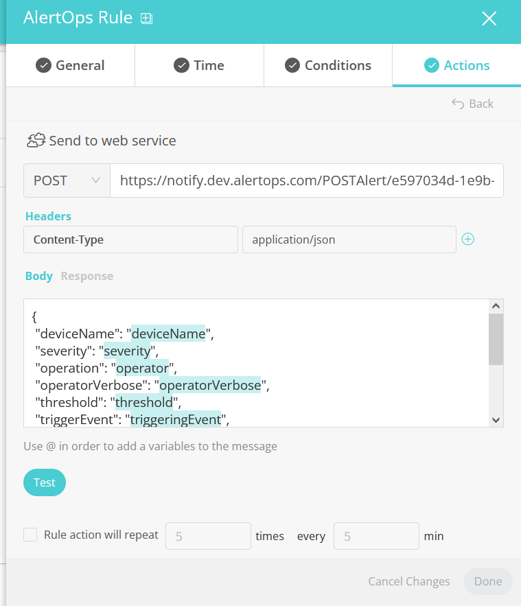 Thats it! You have configured a rule to send alert to a web service. Any alert will be sent to AlertOps for incident management.