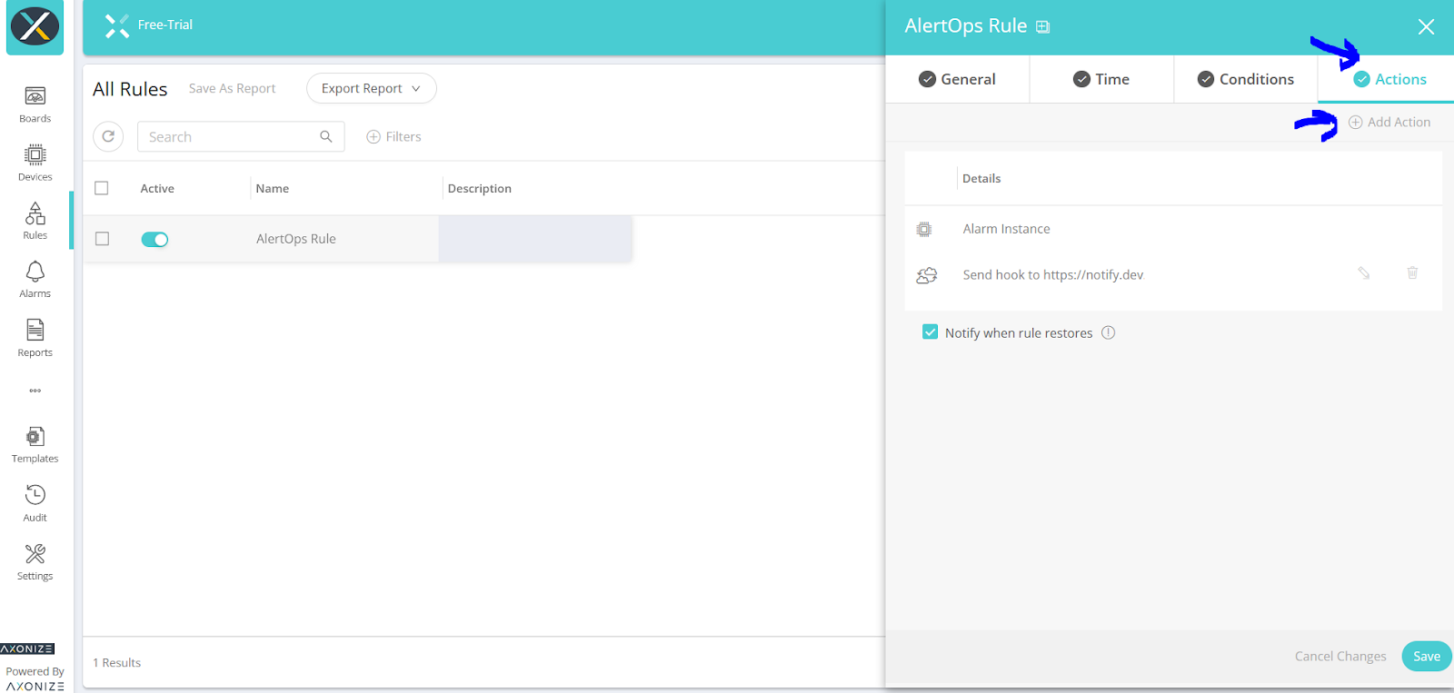 We can define rulesets in AlertOps so that Axonize can send out alerts to the AlertOps platform. AlertOps would ensure based on these notifications received, that it would always reach out and assign to the correct person/team by utilizing its escalation policies, schedules, and workflow features.