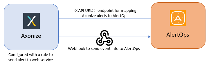 At a high level this is how the flow looks like, you define an API integration in the AlertOps platform by defining settings like Integration Name, Escalation rules, recipient users/groups. Once an integration is defined, a unique API URL is generated. This acts as webhook or the gateway through which notifications from Axonize reach AlertOps and thus an incident/alert is created correspondingly. The API can be defined with various settings like URL mappings, filters, escalations etc. as required. Axonize has to be defined with a rule to send alerts to a web service.