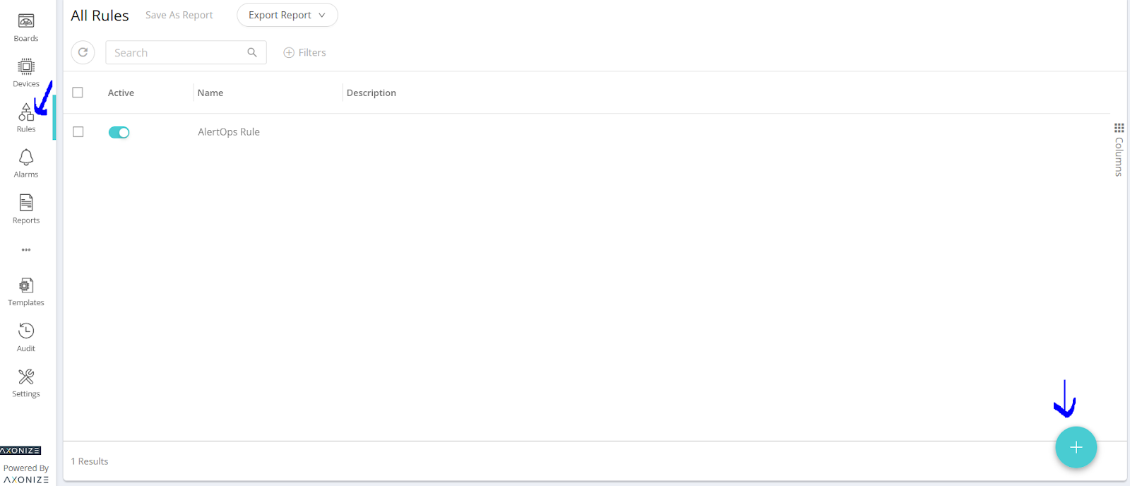 - In your Axonize portal, go to 'Rules', create new rule by selecting the '+' icon.