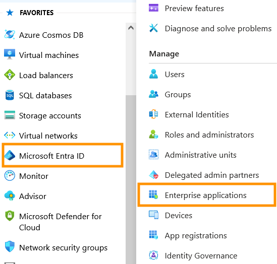 - Go to Microsoft Azure manage portal. On the left menu, click Microsoft Entra ID>Enterprise applications.