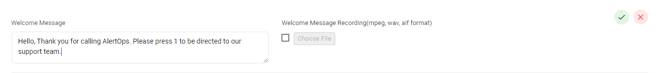 Click the update button on the right, then enter a Welcome Message in the text box or upload a custom recording. This is the message heard by the caller when their call is answered.