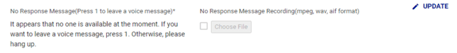Click the update button on the right, then enter a No Response Message in the text box or upload a custom recording. This is the message heard by the caller when no one has answered the forwarded call.