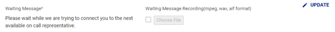 Click the update button on the right, then enter a Waiting Message in the text box or upload a custom recording. This is the message heard by the caller while the system forwards their call.