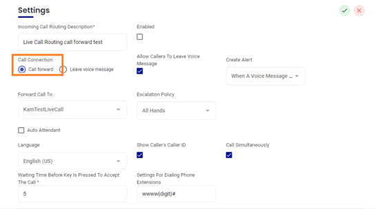 The following settings are only available if you have Call Forward toggled on in the Call Connection section.