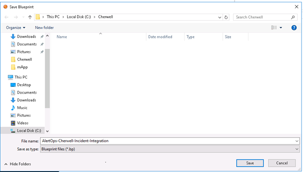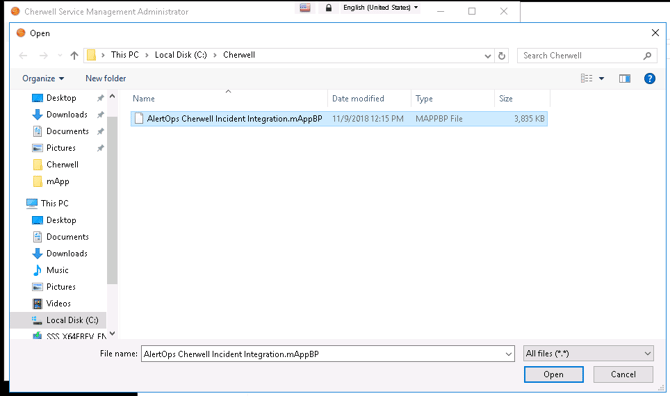 Select the AlertOps Cherwell Incident Integration.mAppMP Blueprint files.