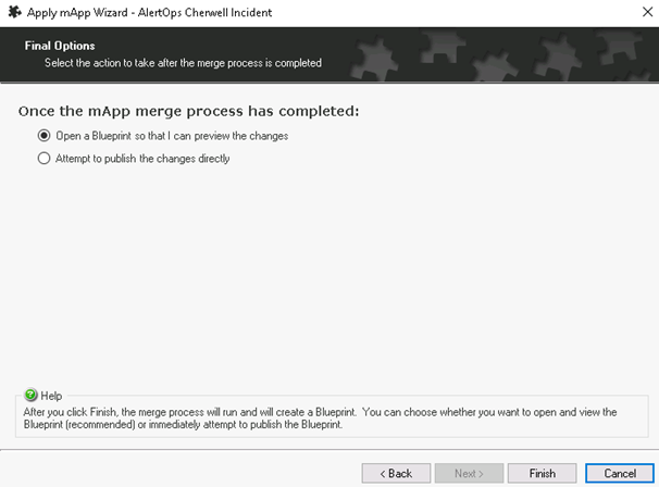 Apply the AlertOps Cherwell Incident Integration.mAppBP Blueprint.