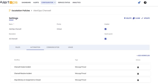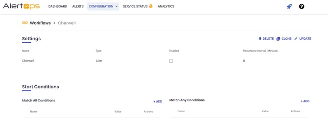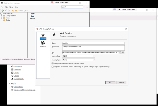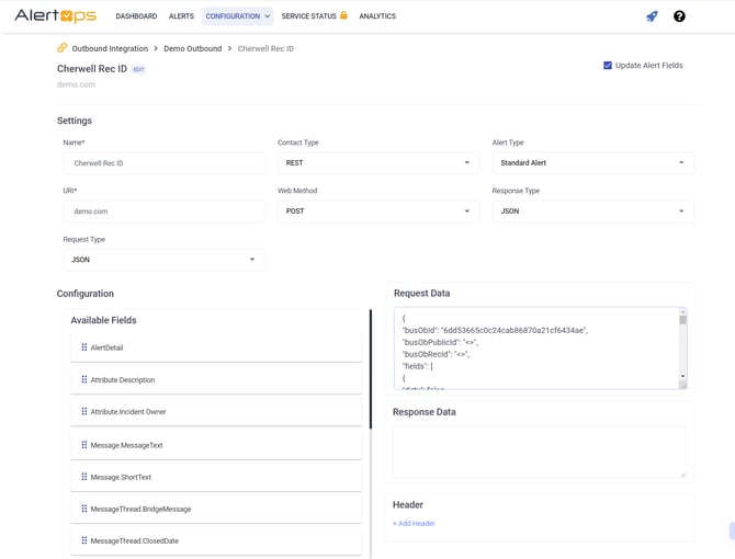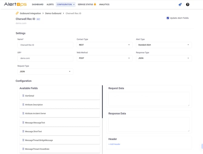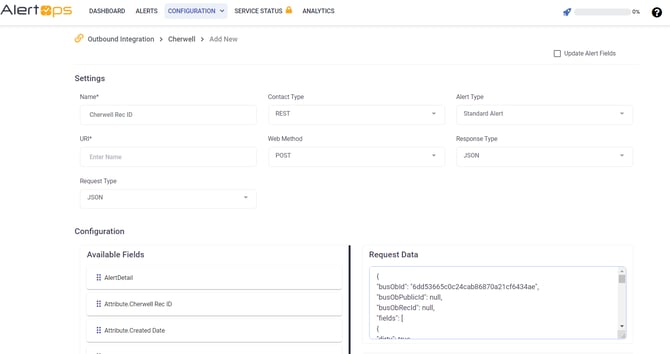 Replace the URL with your AlertOps Web API URL from the AlertOps Cherwell Inbound Integration.