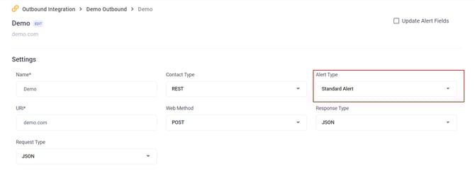 For the Outbound Action, choose the Outbound Integration Create Incident action.
