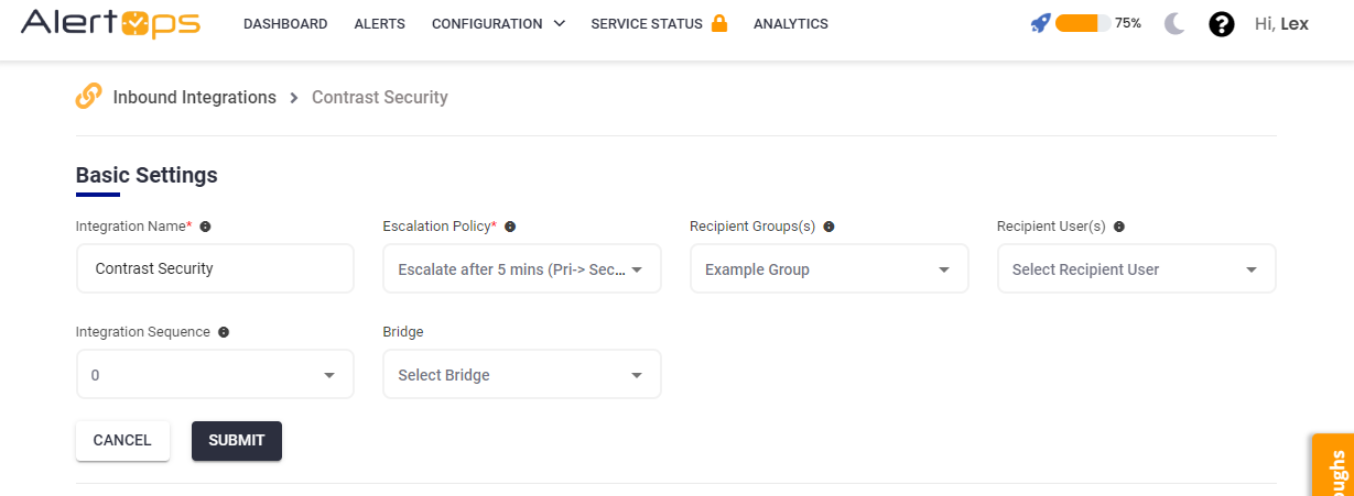 AlertOps provides Inbound Integrations to integrate with numerous monitoring, chat and ITSM tools. You can configure an inbound integration for Contrast Security.