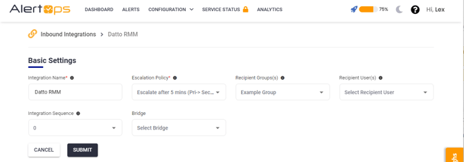 AlertOps provides Inbound Integrations to integrate with numerous monitoring, chat and ITSM tools. You can configure an inbound integration for DattoRMM.