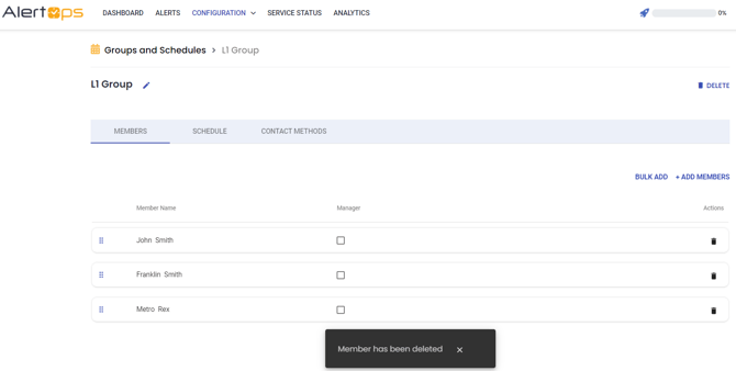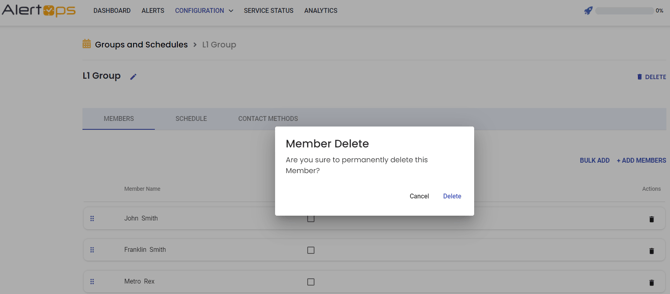 The user will remain in the system but will be removed from the Group. The icon will be greyed out if the member is a part of a Schedule. Members must be removed from all Schedules before they can be removed from the Group or deleted from the system.