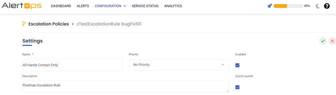 - Click Update to edit the Escalation Policy Name, Description, and Priority
