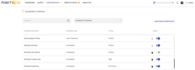 - Navigate to Configuration -> Escalation Policies