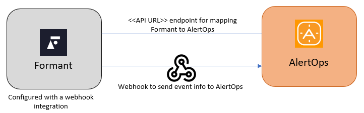 At a high level this is how the flow looks like, you define an API integration in the AlertOps platform by defining settings like Integration Name, Escalation rules, recipient users/groups. Once an integration is defined, a unique API URL is generated. This acts as webhook or the gateway through which notifications from Formant reach AlertOps and thus an incident/alert is created correspondingly. The API can be defined with various settings like URL mappings, filters, escalations etc. as required. Formant has to be defined with an integration webhook and that has to be attached to an event.