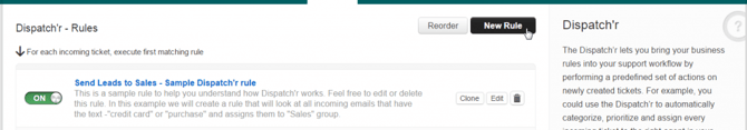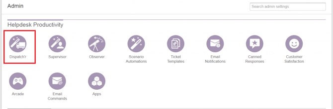 - Create a rule to send an alert when a ticket is created. In the FreshDesk Admin screen, click Dispatch'r.