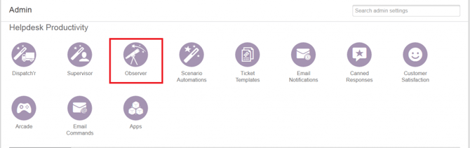 - Create a rule to send an alert when a ticket is closed. In the FreshDesk Admin screen, click Observer.
