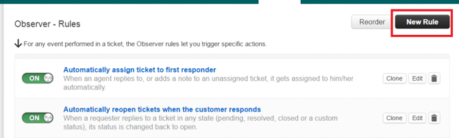 - For 'Ticket Creation' select 'New Rule'