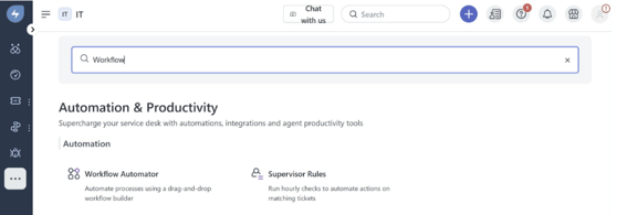 1) In the left nav-bar, click on Admin (the gear icon). Search for Workflow Automator.