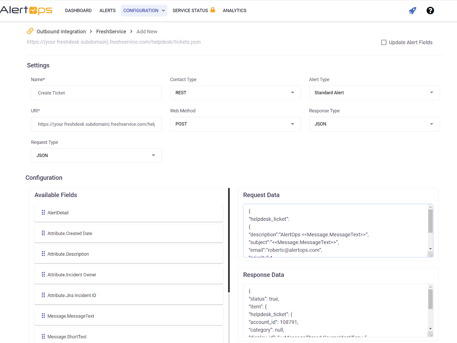 In the Outbound Services tab, add the FreshService – Create Ticket Action