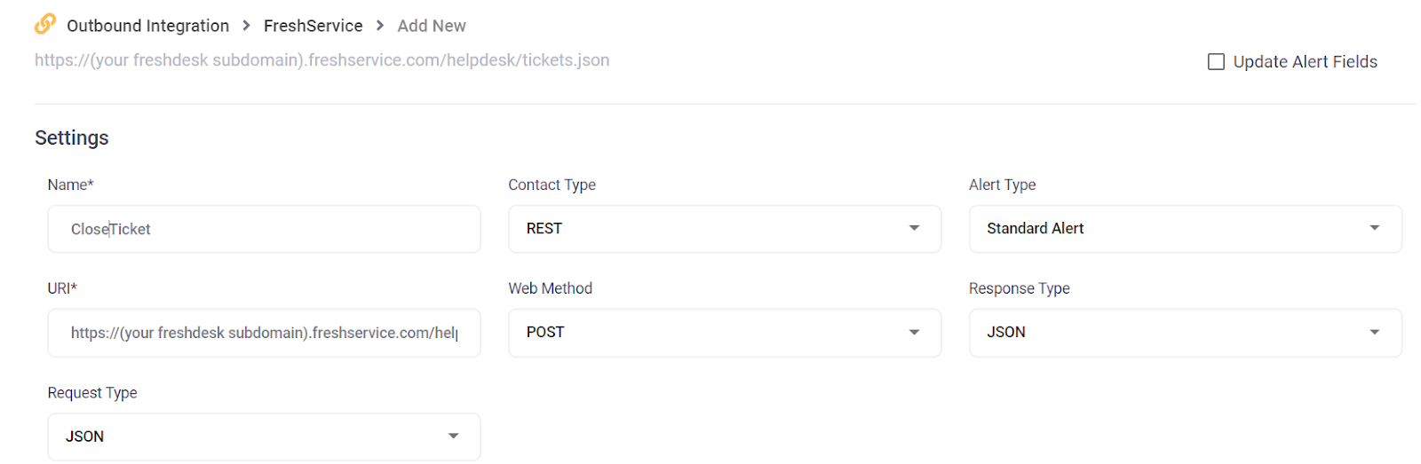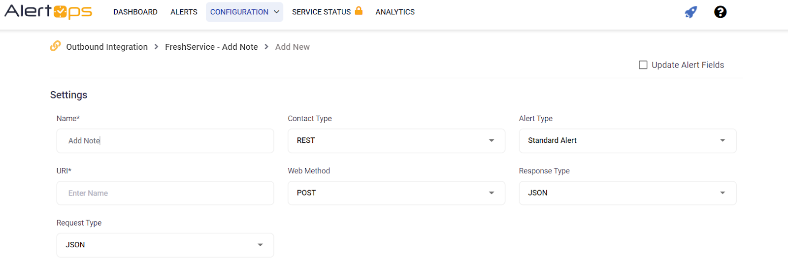 Response Action = Check Update Alert Fields