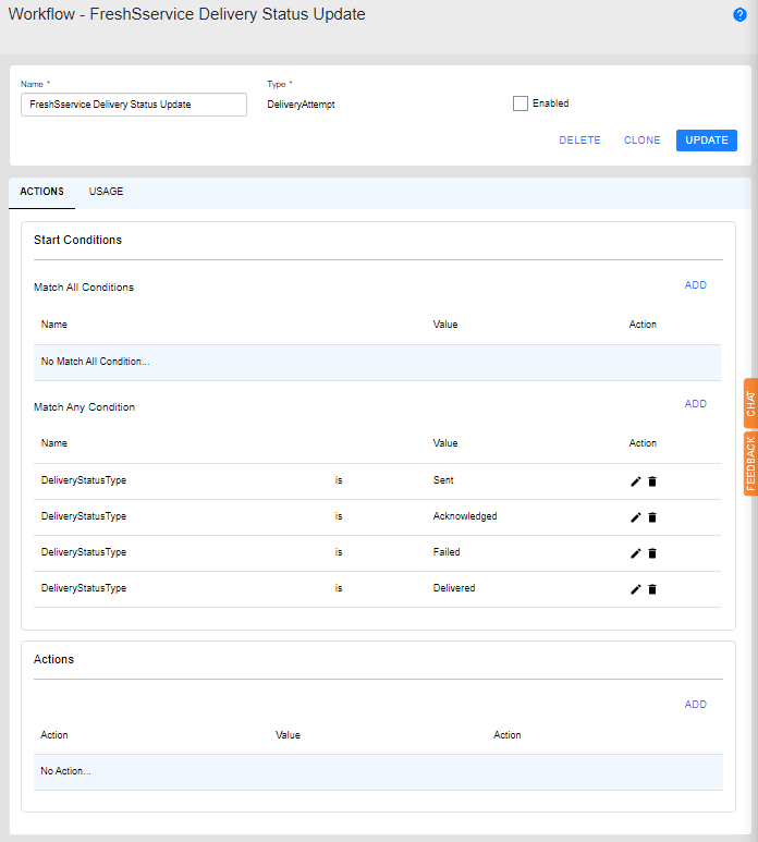 - Select FreshService Delivery Status workflow.