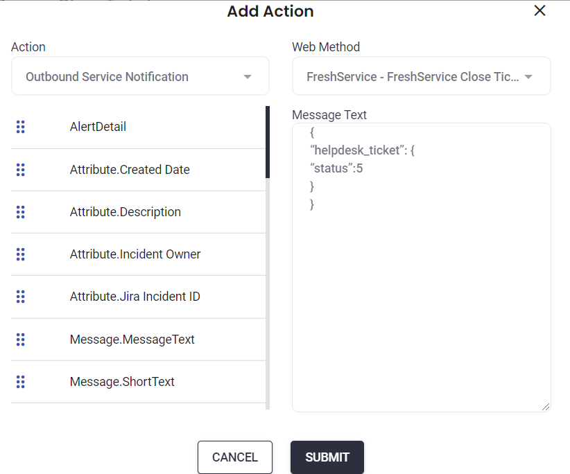 Outbound Action =- Freshservice – Close Ticket