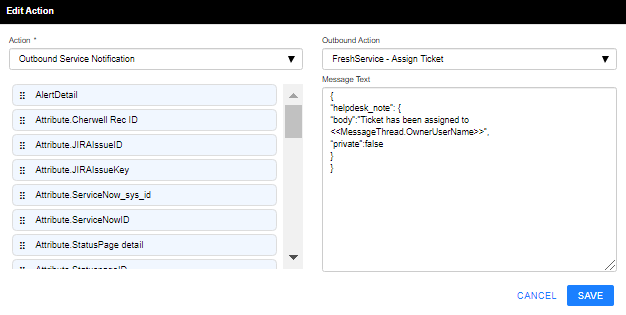 Outbound Action = FreshService – Assign Ticket