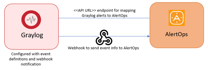 At a high level this is how the flow looks like, you define an API integration in the AlertOps platform by defining settings like Integration Name, Escalation rules, recipient users/groups. Once an integration is defined, a unique API URL is generated. This acts as webhook or the gateway through which notifications from Graylog reach AlertOps and thus an incident/alert is created correspondingly. The API can be defined with various settings like URL mappings, filters, escalations etc. as required. Graylog has to be configured with event definitions and webhook notifications.