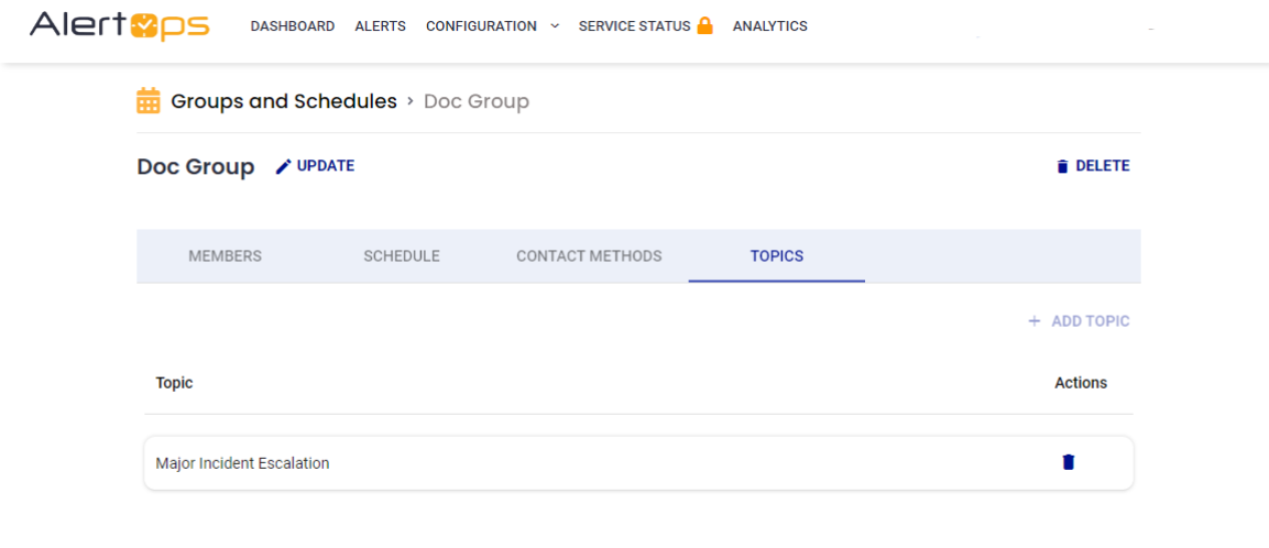 Use topics to quickly route alerts to the right Group with a pre-templated message. Topics are heavily used in conjunction with Manual Alerting. There must be at least one configured Topic to add a Topic to a Group.