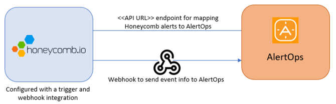 At a high level this is how the flow looks like, you define an API integration in the AlertOps platform by defining settings like Integration Name, Escalation rules, recipient users/groups. Once an integration is defined, a unique API URL is generated. This acts as webhook or the gateway through which notifications from Honeycomb reach AlertOps and thus an incident/alert is created correspondingly. The API can be defined with various settings like URL mappings, filters, escalations etc. as required. Honeycomb must be configured with a trigger and a Webhook integration.