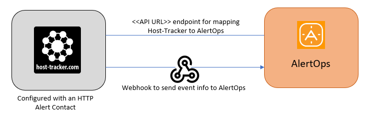 At a high level this is how the flow looks like, you define an API integration in the AlertOps platform by defining settings like Integration Name, Escalation rules, recipient users/groups. Once an integration is defined, a unique API URL is generated. This acts as webhook or the gateway through which notifications from Host-Tracker reach AlertOps and thus an incident/alert is created correspondingly. The API can be defined with various settings like URL mappings, filters, escalations etc. as required. Host-Tracker has to be defined with a HTTP Alert Contact.